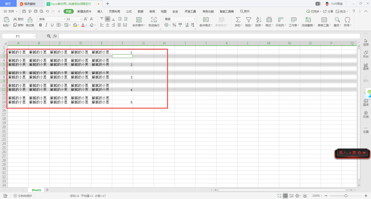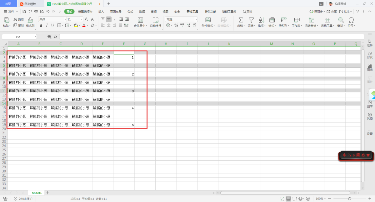 最后,我们就可以轻松的获得拥有间隔空行的表格了。虽然看起来步骤有些多,但是操作起来一点都不复杂,只需要在设置好定位条件后,回到表格界面时,不要随意按下鼠标左键进行操作就可以轻松的实现了。