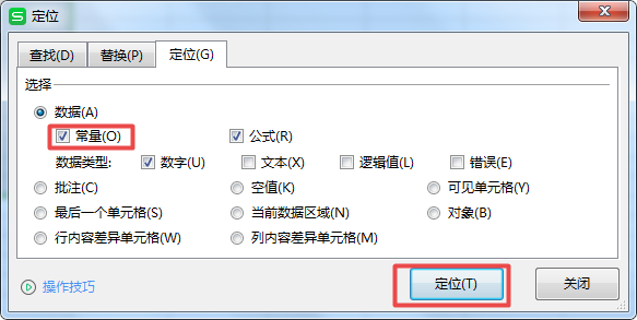 第九步,此时又会弹出【定位】窗口,我们在此选择【常量】功能,然后点击【定位】按钮。