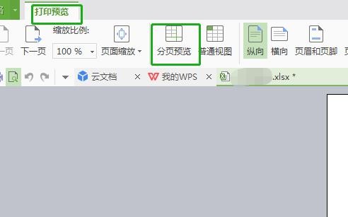 点击上方菜单栏页面布局-分页预览,进入分页预览模式。