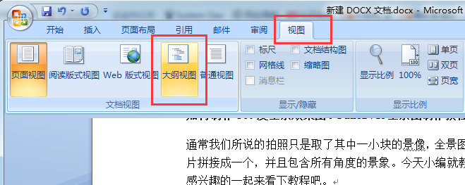 第三步,在文档顶部点击“视图”,然后选择“大纲视图”。
