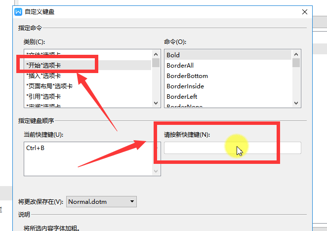 第四步,同样还是先选择一个指令,然后在【请按新快捷键】输入框中写入想要设置的快捷组合键,点击【指定】,然后关闭窗口即可。