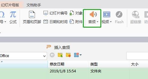 解决办法:插入—音频—嵌入音频—选择音频文件—点击小喇叭图标—点击设置成背景音乐。同时可对插图的背景音乐进行播放设置。