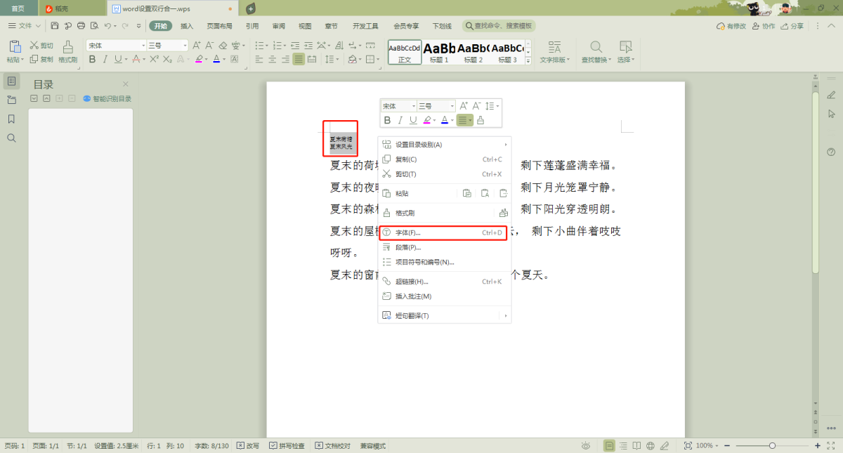 第六步,选中设置好的双行合一的文字,然后按下鼠标的右键,在弹出的选项中选择【字体】选项。
