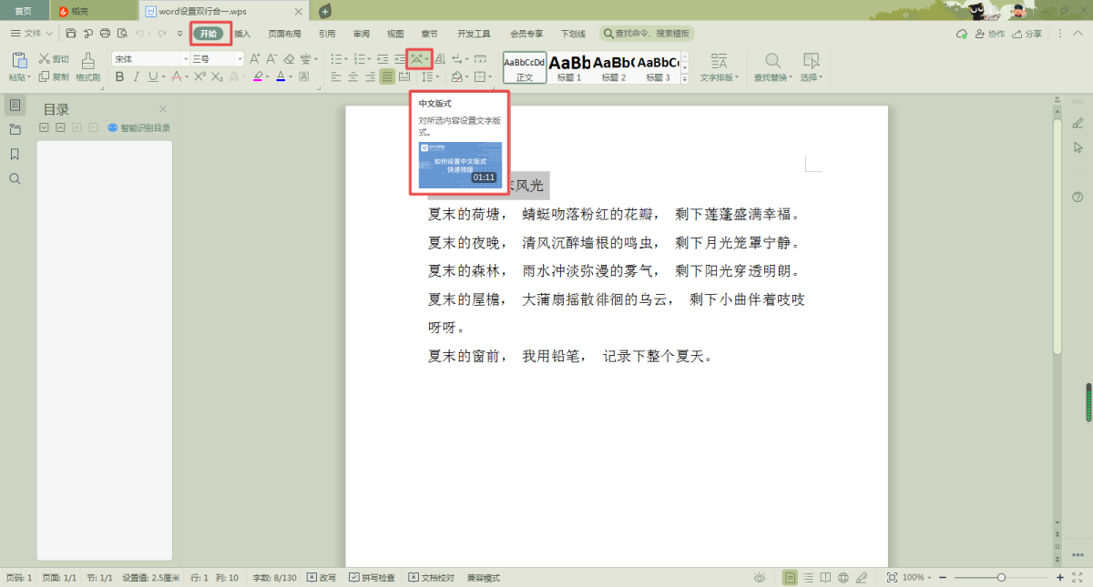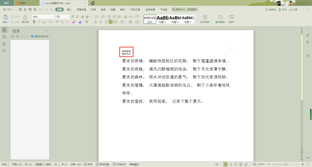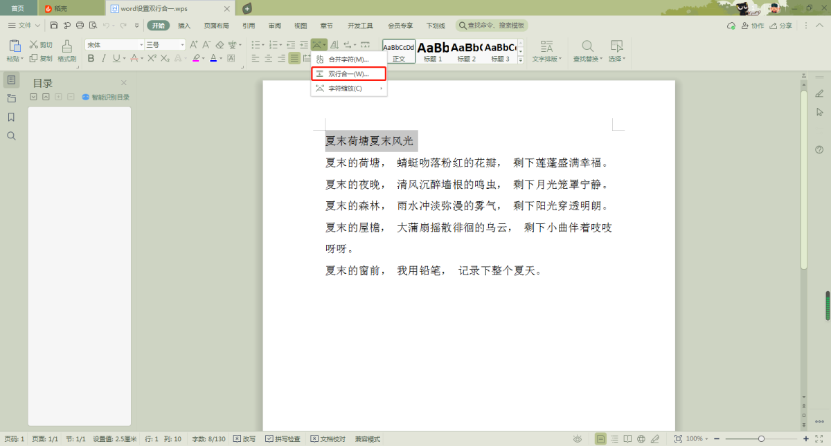 第五步,回到word文档界面当中后,我们就可以看到刚刚的文字就真的变成双行的形式显示了。