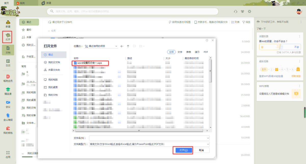 第一步,在电脑的桌面上找到WPS程序,然后双击打开,接着将需要进行处理的文档也同时打开。