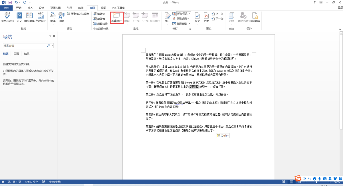第二步,然后在其下方的选项中,找到【新建批注】功能,并点击它。