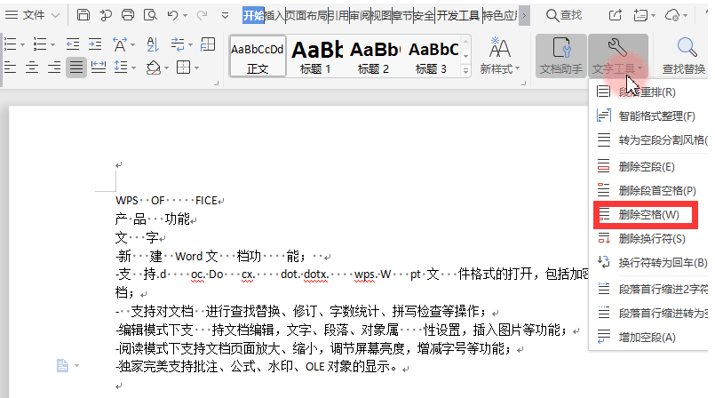 第二步,点击展开【文字工具】选项卡,点击选择【删除空格】。