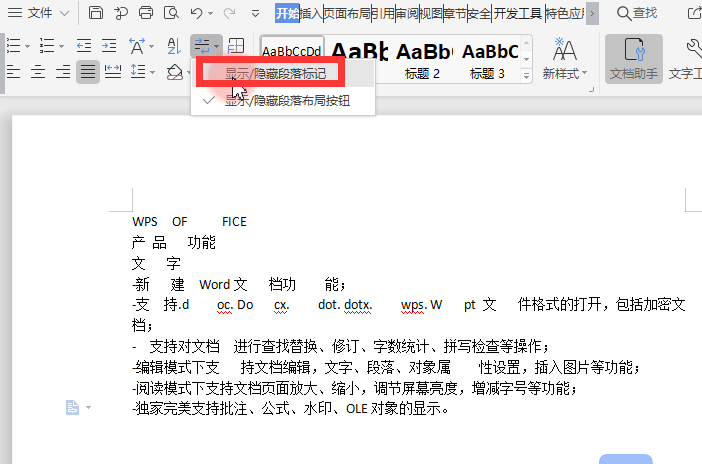 第一步,在我市中打开一个有空白格的文档,在【开始】选项卡中勾选【显示段落标记】。