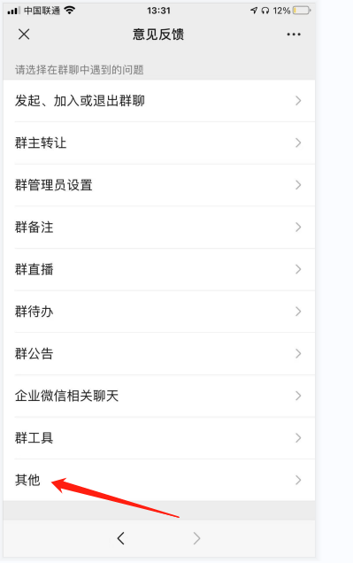 6. 进入到选择在群聊中遇到的问题,点击其他。