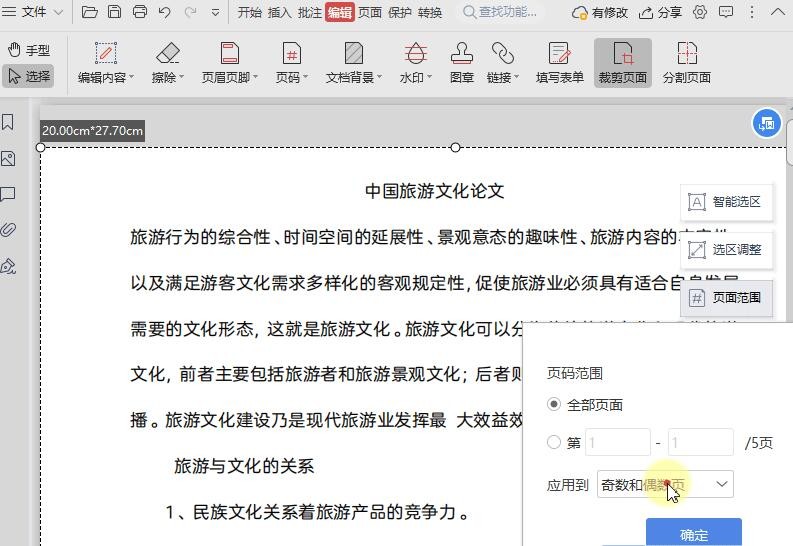 ▪点击“页面范围”可以选择应用裁剪的页面范围,例如设置为应用“全部页面”。