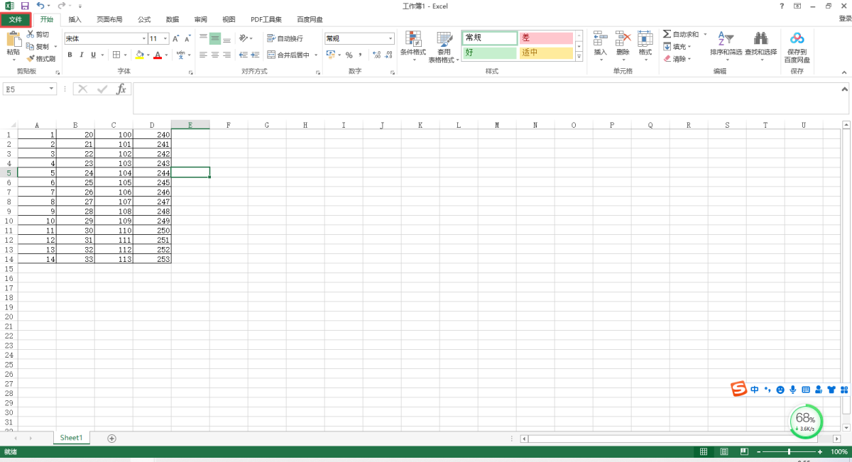 第一步,我们将需要处理的Excel文档打开,然后找到界面顶部的【文件】选项,并点击它。