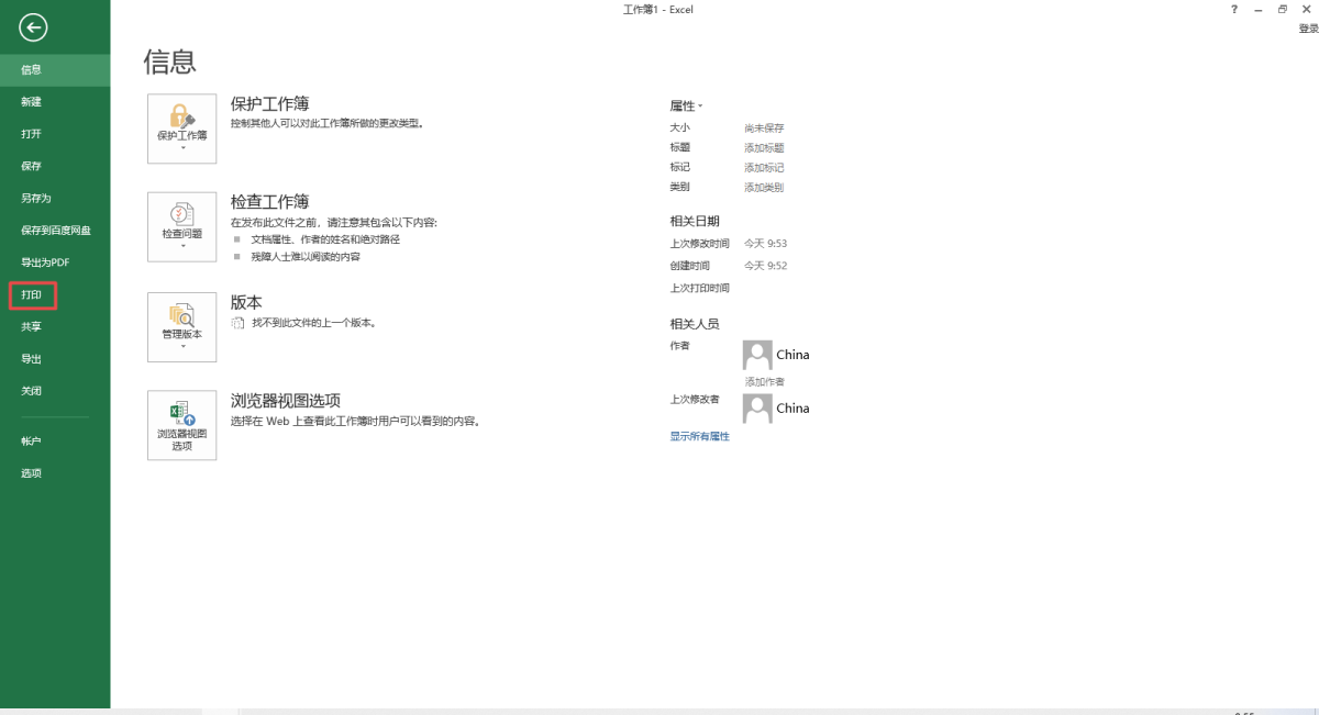 第二步,接着在弹出的页面的左侧,找到【打印】功能,并点击它。