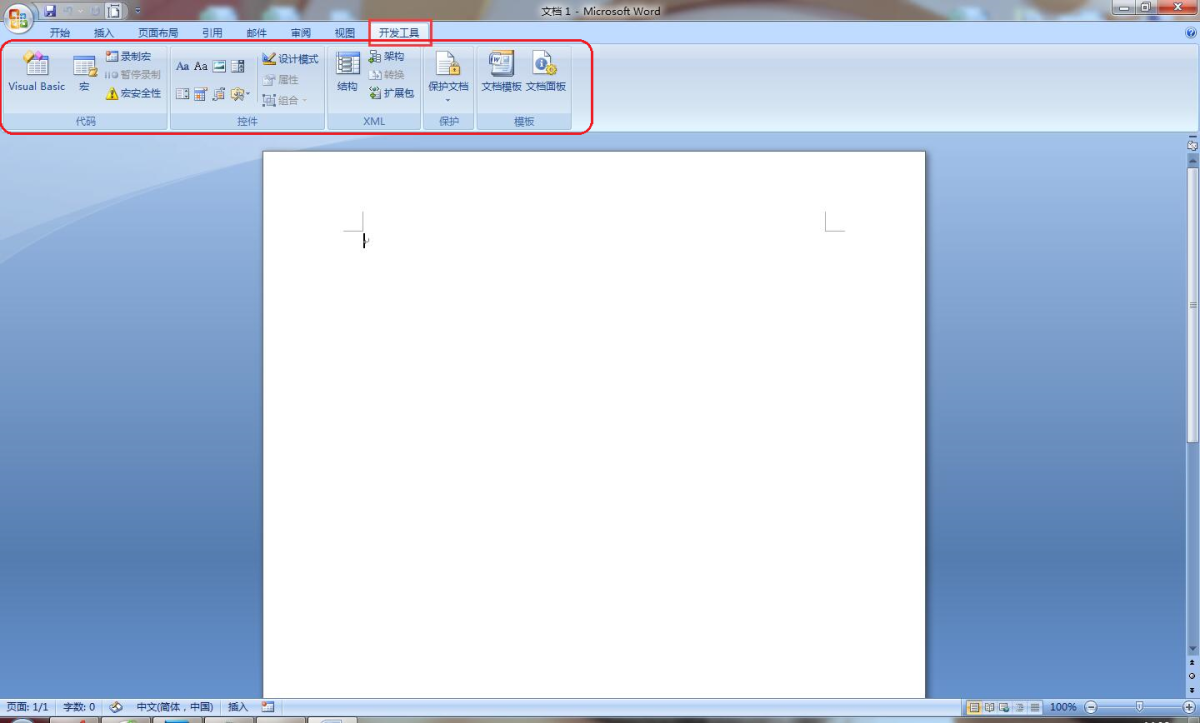 第四步,回到Word文档界面后,我们就可以在软件界面最上方的工具栏上,看到【开发工具】选项卡了。此时,我们就可以使用开发工具中的各种功能了。