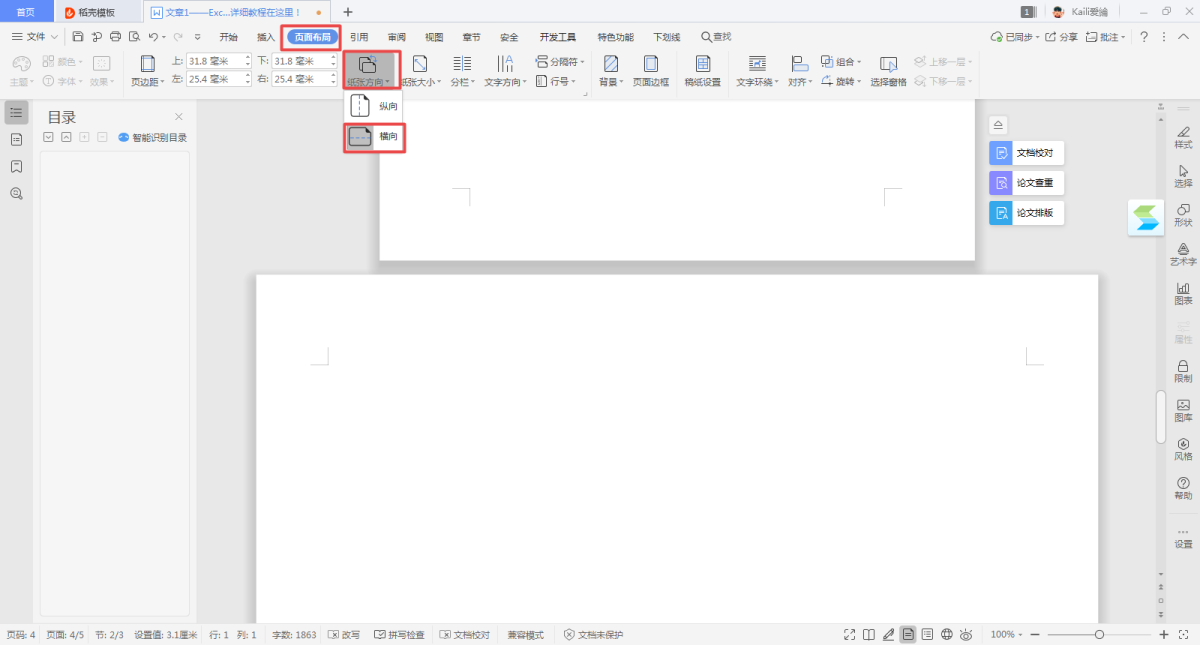 在我们编辑的多页面的文档中,有的页面需要是纵向的,而有的页面又需要是横向的,横向纵向需要混排,这该怎么实现呢?
