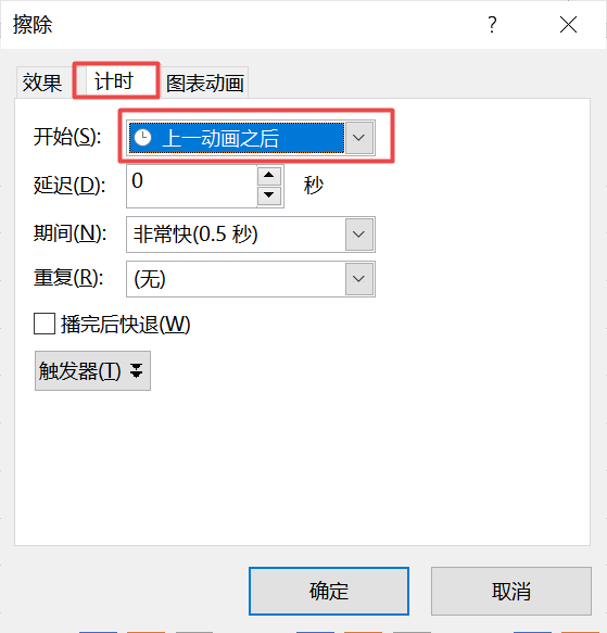 第八步,然后在选择窗格窗口中,切换到【计时】选项中,然后将【开始】后面的选择选择为【上一动画之后】。