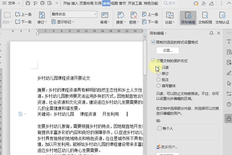 为了保护WPS文档不被他人再次修改,只能查阅,我们可以使用限制编辑功能。那么如何设置呢?快来和小编看看吧