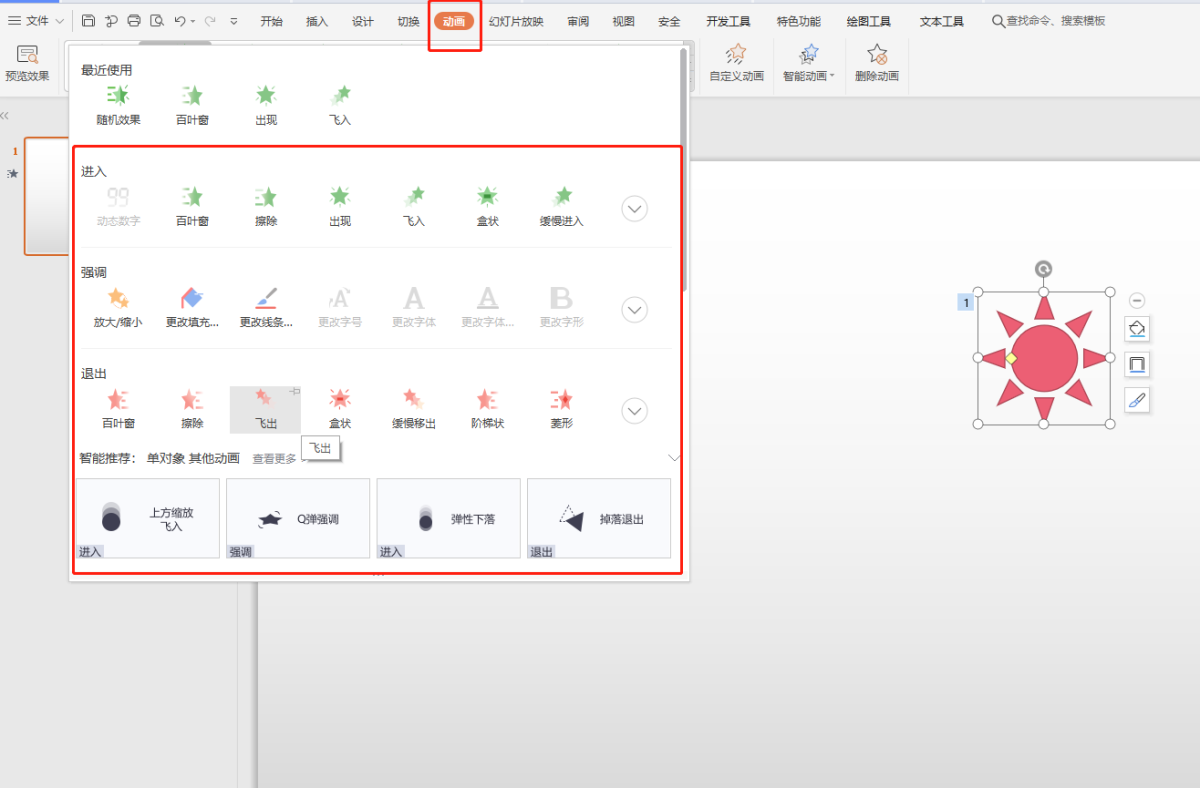 画结束时如果感觉很生硬,那么我们可以在 [ 效果选项 ] 中,将 [ 平滑结束 ] 同样改为缓慢移出,与动画持续的时间保持一致。
