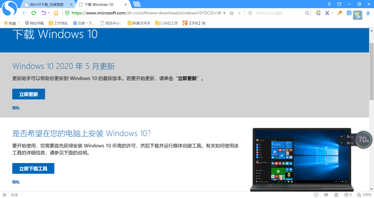 第四步,U盘准备好以后,我们把U盘插到电脑上,然后在刚才点开的微软官网,点击【立即下载工具】按钮,然后等待下载完成,下载完成后,直接点击【打开】。