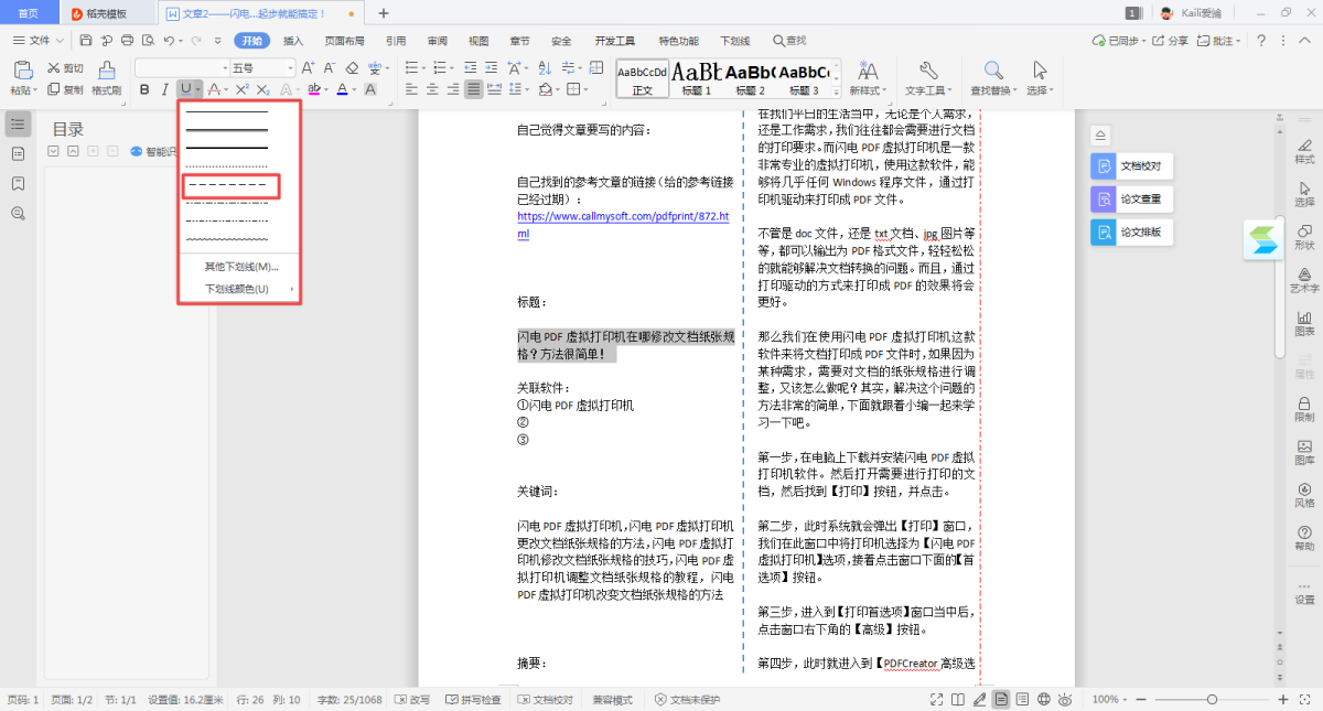 如何在文档的最右侧添加虚线呢?其实方法也很简单。