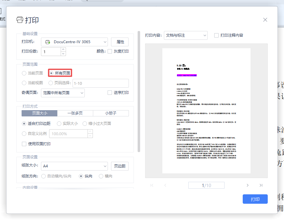 第四步,如果想要打印PDF文件的所有页面的话,就选择【所有页面】选项。