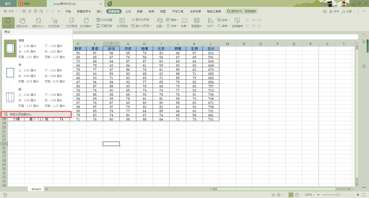 第三步,接着我们在弹出的一系列选项中,选择【自定义边距】选项,并点击打开。