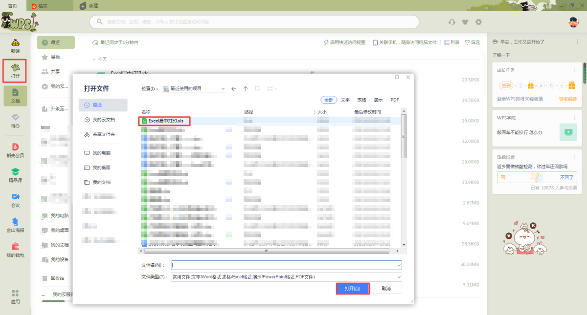 第一步,在电脑的桌面上找到WPS程序,然后双击打开,接着将需要进行打印的Excel表格文档也同时打开。