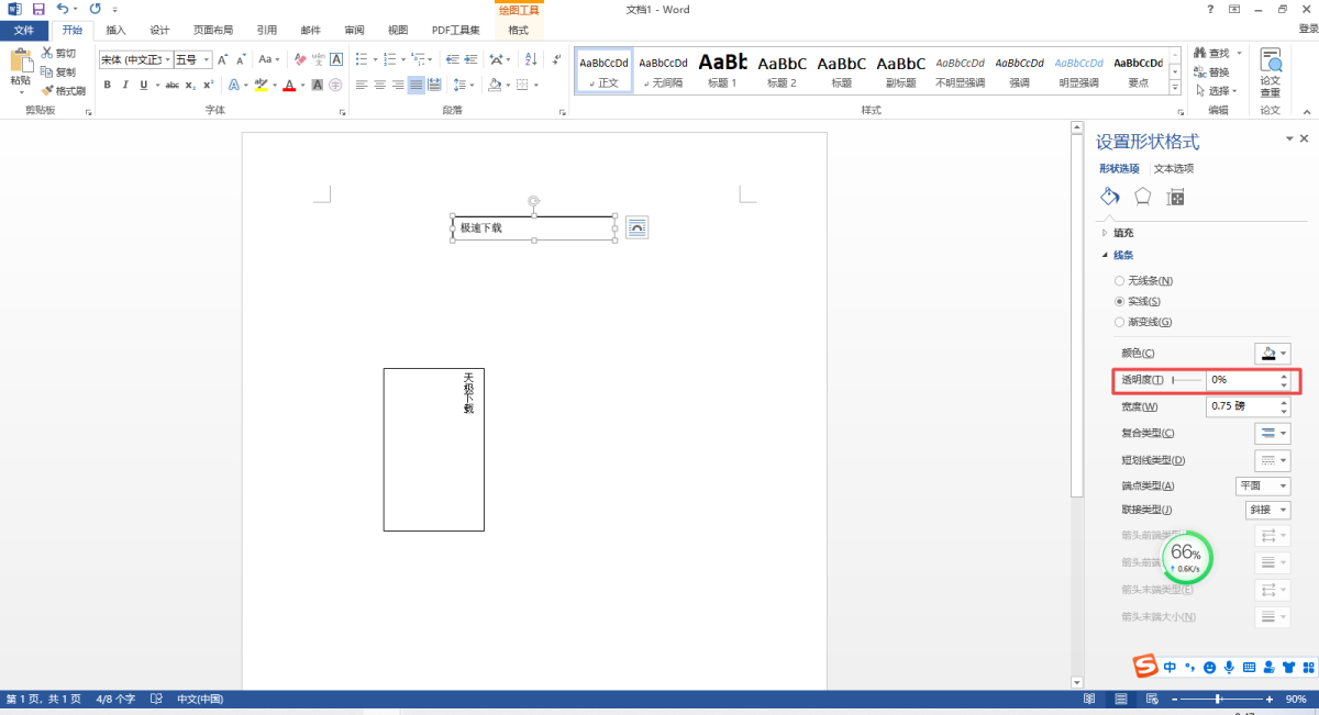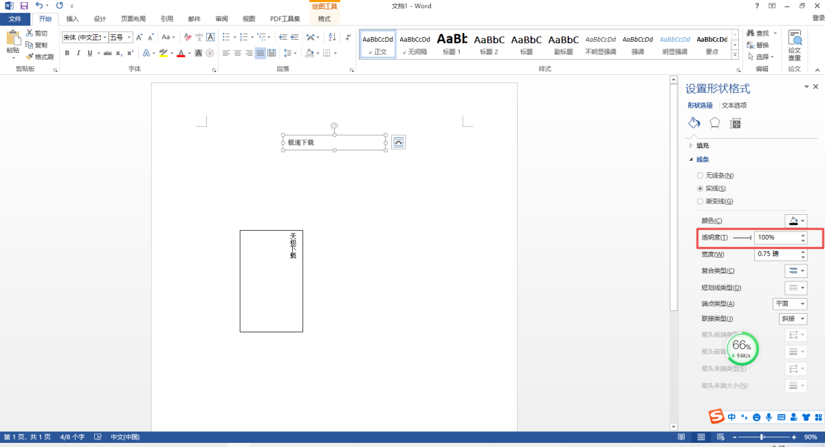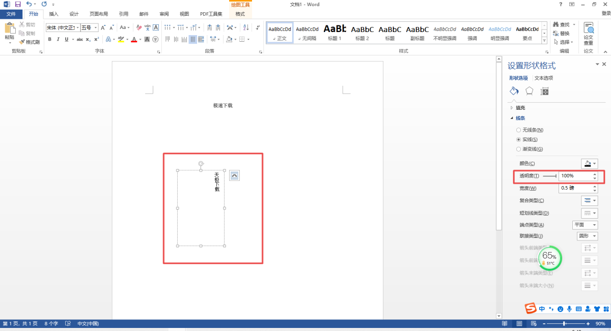 第五步,我们将该文本框的线条的透明度调整到100%。
