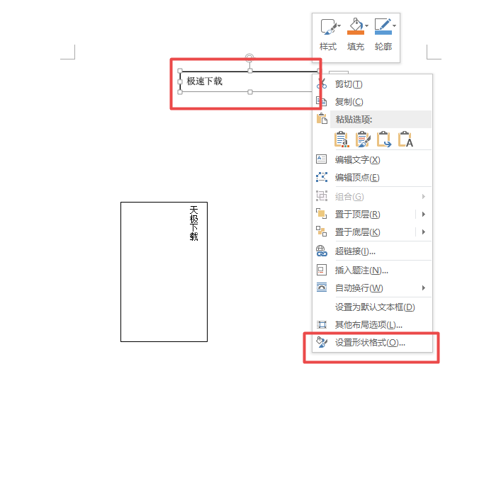 第一步,我们将需要进行处理的文档打开,然后选中文档中的需要设置为透明的文本框,然后按下鼠标右键,在弹出的选项中,选中【设置形状格式】选项。
