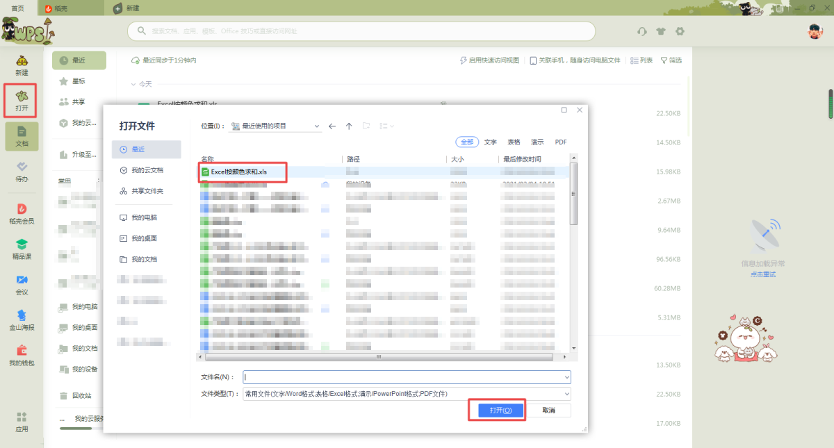 第一步,在电脑的桌面上找到WPS程序,然后双击打开,接着将需要进行处理的Excel表格文档也同时打开。