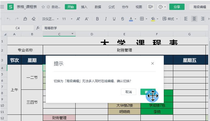 切换至高级编辑状态是无法多人同时在线编辑哦。