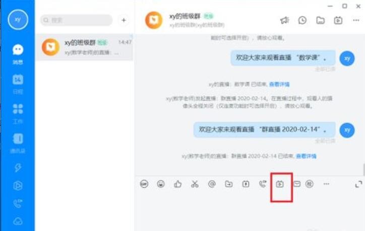 第一步电脑上打开钉钉,进去群聊之后,点击直播图标: