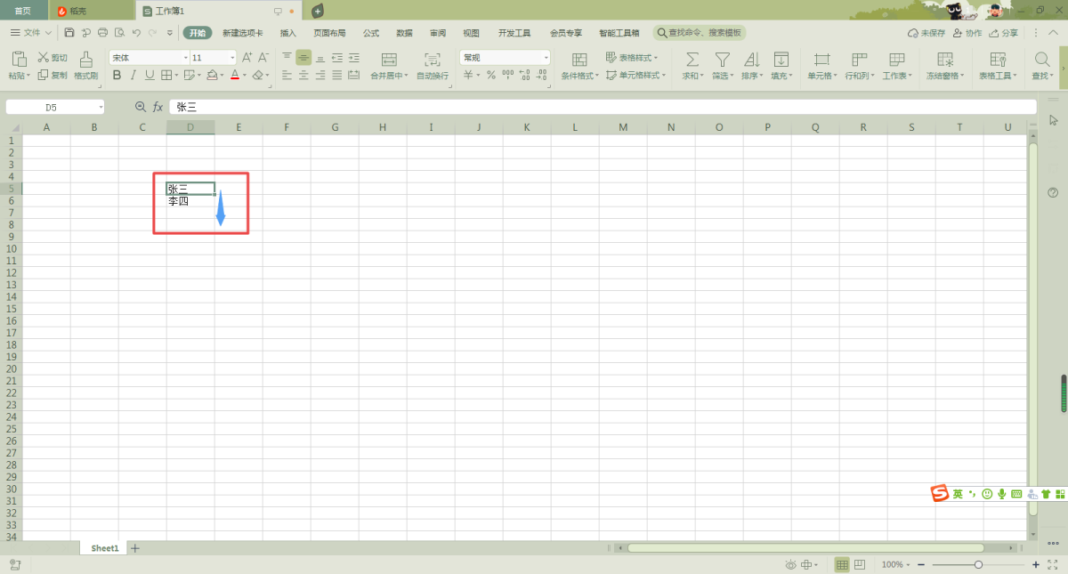 第二步,此时我们选择最上面的【D5】单元格,然后将鼠标的光标放到单元格的上。