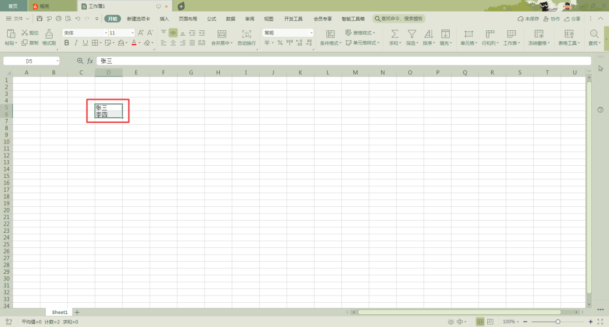 第一步,在电脑上打开需要进行处理的Excel工作表,此时我们需要将表格当的【D5】单元格当中的内容与【D6】单元格当中的内容进行互换。