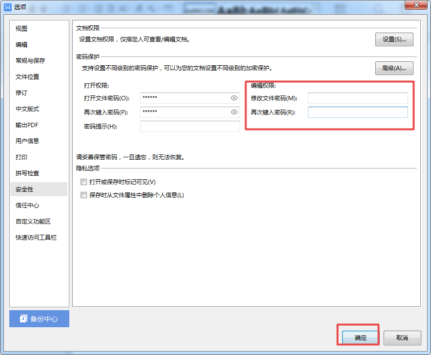 第三步,接着软件还会提示我们输入文档的编辑密码,我们同样进行输入。