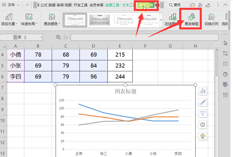 表格中更改图表类型是不是特别的简单,只需要三步就可以啦,WPS果然是办公的好帮手,来本站下载最新版WPS免费哟。