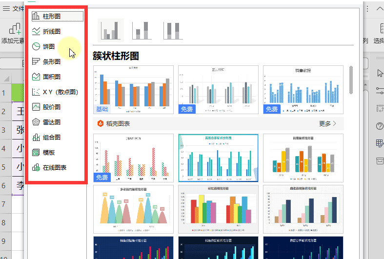 第三步,在新弹出的图表选择对话框中,点击选择你认为更合适的图表点击即可更换原来的图表。