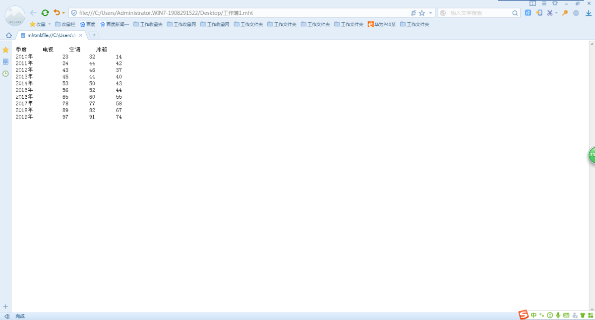第四步,网页文件保存成功后,我们找到网页的保存地址,比如桌面,找到刚刚所保存的网页文件,然后将其双击打开,就可以看到保存为网页形式的工作表了。