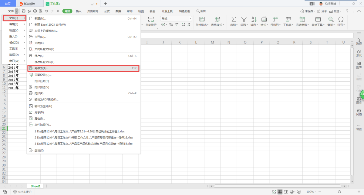 第二步,在弹出的选项中,选择【文件】→【另存为】选项。