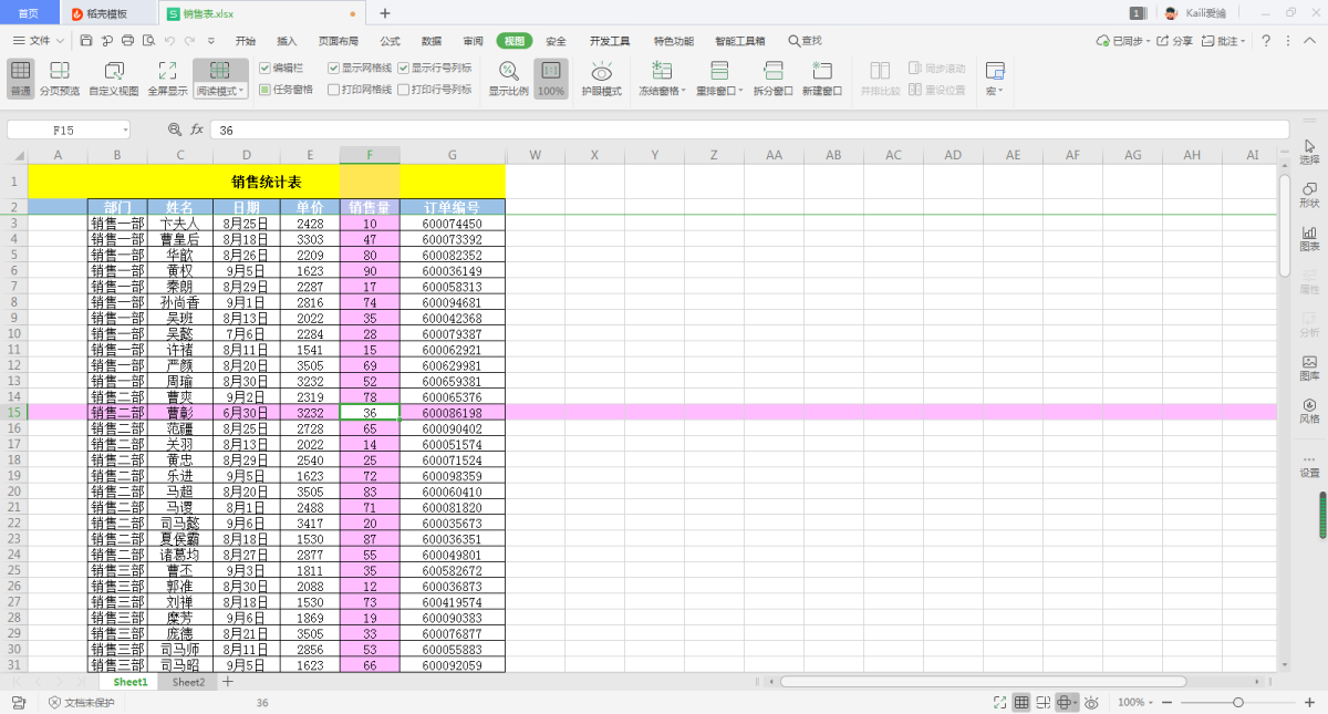 第六步,这样我们在点击查看表格当中的数据时,表格中所标注的颜色就显示为我们喜欢的颜色了,这也令数据查看起来就更为便利了。