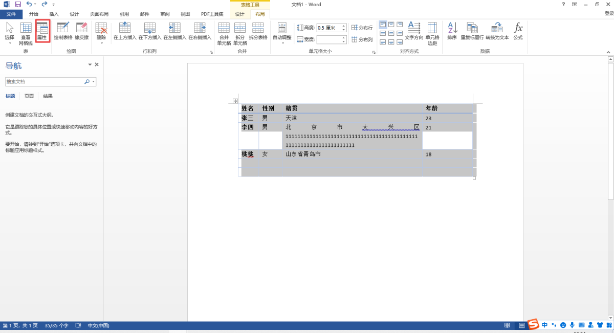 第一步,将需要处理的Word文档在电脑上打开,然后我们选中word中的需要调整的整个表格,然后找到界面顶部的【布局】选项卡。