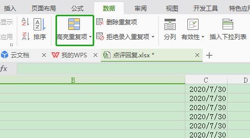 首先打开需要查找重复项的表格,依次点击【数据】——【高亮重复项】;