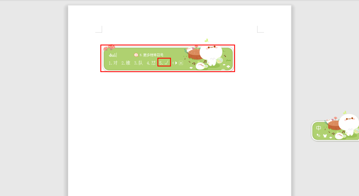 第一步,使用搜狗拼音输入法,然后在输入法当中输入拼音“dui”,然后在弹出的选项中选择“√”。