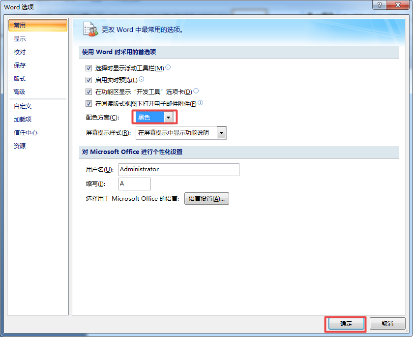 第四步,然后,我们可以在配色方案下看到,它还拥有【黑色】和【银波荡漾】两个主题颜色可选,我们按照自己的喜好来进行选择即可,最后点击【确定】按钮。
