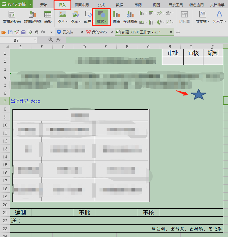 如果,你觉得直接显示文字样式的和周围材料不搭配,不美观,你可以先在材料中找到一个合适的位置插入一个形状,例如五角星;然后鼠标移动到五角星上,右击鼠标会出现一个菜单栏,在菜单栏中的最下面有一个超链接选项,然后在用同样的操作方法链接文件就可以了(也可以用鼠标左键点击形状,然后使用快捷键Ctrl+K,也可以快速进入超链接页面)。