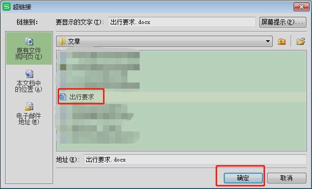 第二步,在菜单栏中选择“插入”选项,然后在下面工具栏中找到“超链接”并点开它,然后选择你需要插入的文件,点击确定;