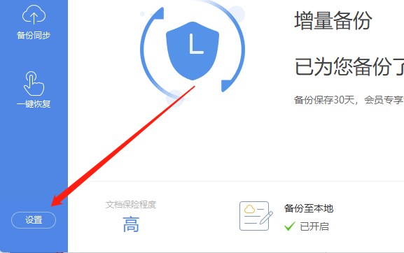 这时就会打wps2019的备份中心的窗口,在窗口中点击左下角的“设置”按钮。