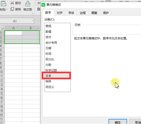 第三步,然后在新对话框中的【数字】选项卡处,点击选择【文本】,确定即可。