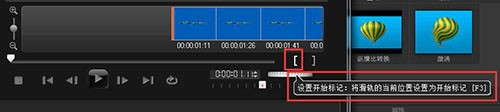 首先单击会声会影预览窗口下方的“播放”按钮,播放至合适位置后单击“暂停”按钮,单击“设置结束标记”按钮,确定视频终点位置。