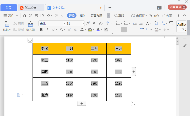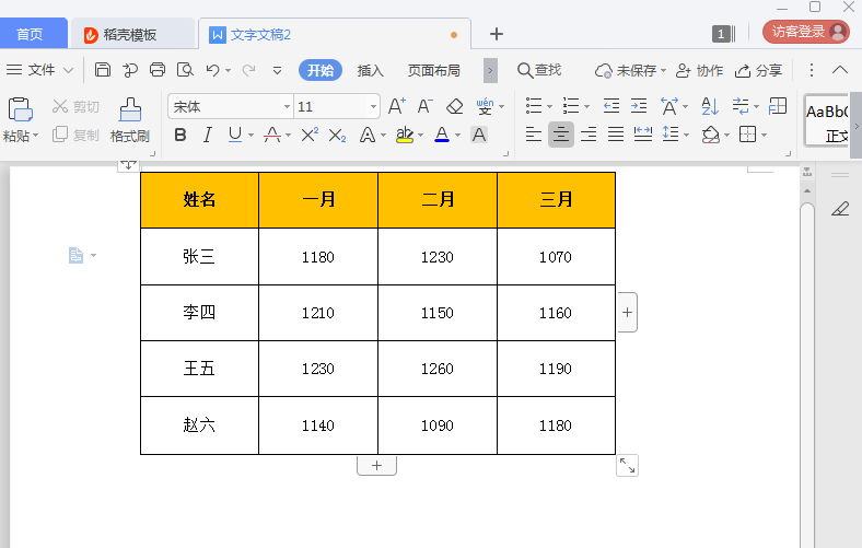 点击表格就能进入编辑状态,编辑完成后,鼠标点击文档窗口任意空白处,即可退出编辑状态。