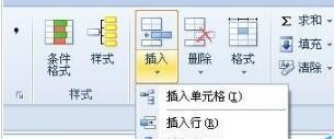 7、在“开始”选项卡中选择“插入”下的“插入行”